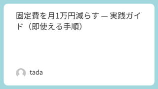 資産づくりの基礎 固定費を月1万円減らす — 実践ガイド(即使える手順) STEP 0:準備(必ずやる)直近3ヶ月分の「口座+クレカ」明細を用意→ 月ごとの平均固定費を把握します(Excel/ス... 2025.11.29 資産づくりの基礎