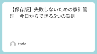 資産づくりの基礎 【保存版】失敗しないための家計管理|今日からできる5つの鉄則 家計管理は「節約の気合い」ではなく「仕組み」で決まります。正しい型さえ作れば、がんばらなくても毎月お金が残るようになりま... 2025.11.29 資産づくりの基礎