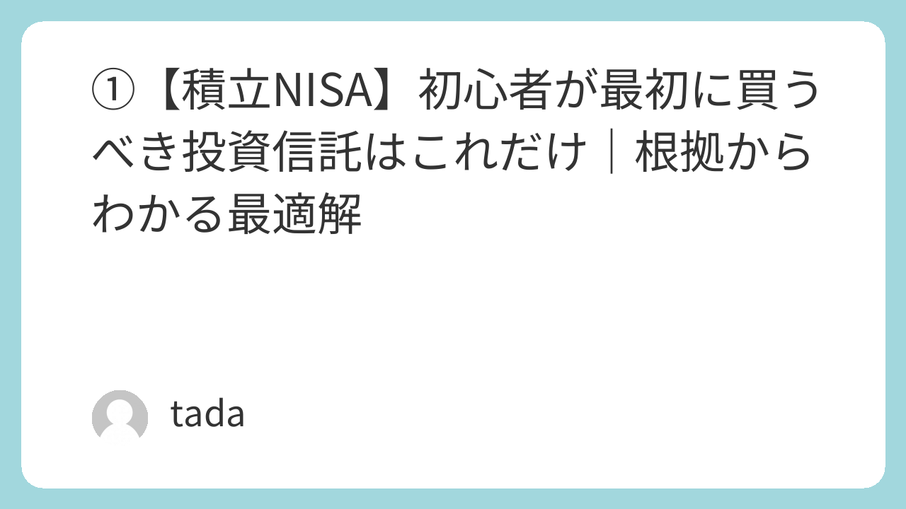 ①【積立NISA】初心者が最初に買うべき投資信託はこれだけ|根拠からわかる最適解